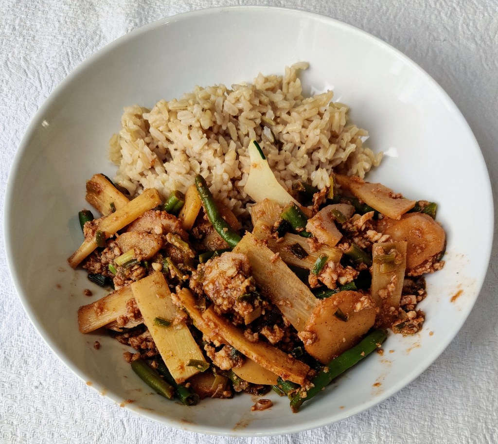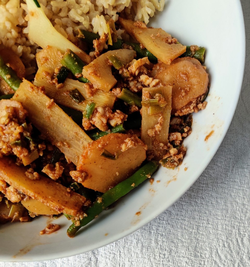 - Add in the water chestnuts, bamboo shoot and green beans fry for a further few minutes.