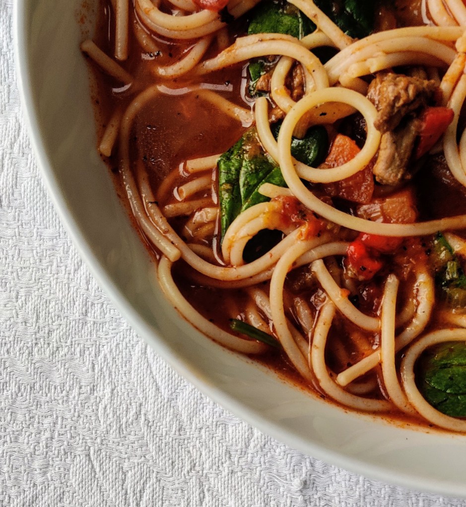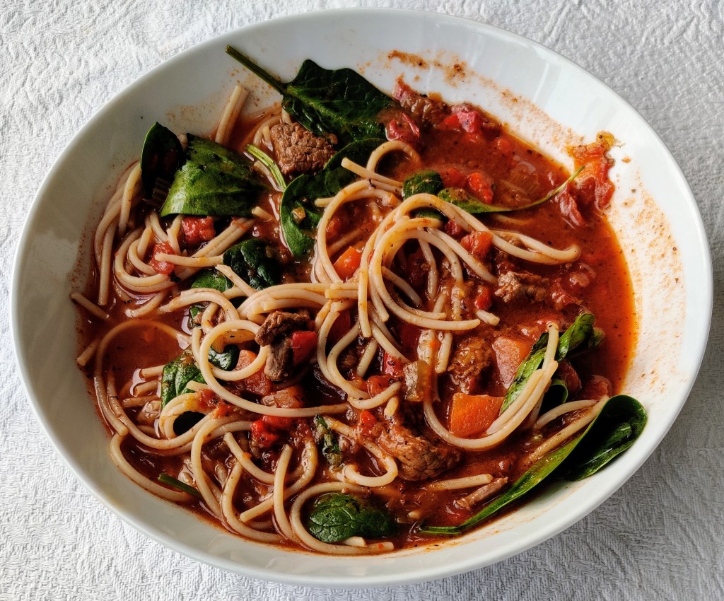Oven Baked Beef and Pasta Soup was a tasty dish. It was a good way to enjoy a nutrient dense meal. It was a dinner that was quite time consuming but it was easy to prepare and cook. The dish could be made in advance of the meal and stored in the freezer. I would cook the pasta as I was heating the soup up. We tend to like brown rice pasta and rice including the pasta should not be frozen. The meal also made lovely leftovers the next day too. However you decide to eat this dish, as always, please enjoy. Thank you xxx