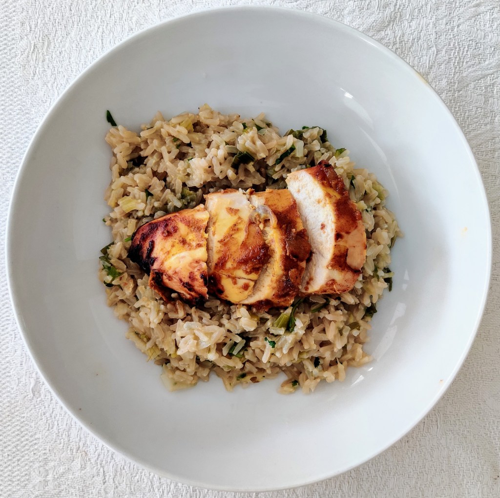 - Once all the liquid has disappeared from the pan, serve into the bowl and put the chicken on top.