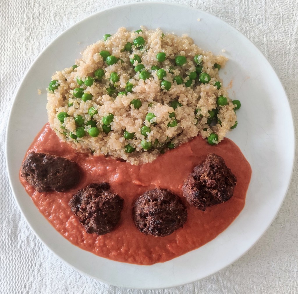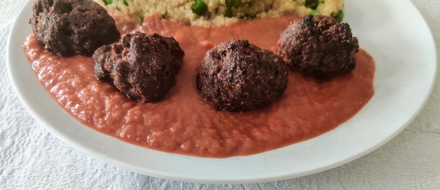 - Serve the dish when the meatballs and rice or quinoa are cooked and the sauce is thick and creamy.