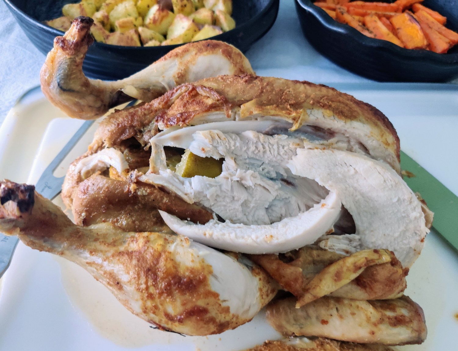 - Leaving the chicken to rest will result in juicer meat and it will be easier to carve.