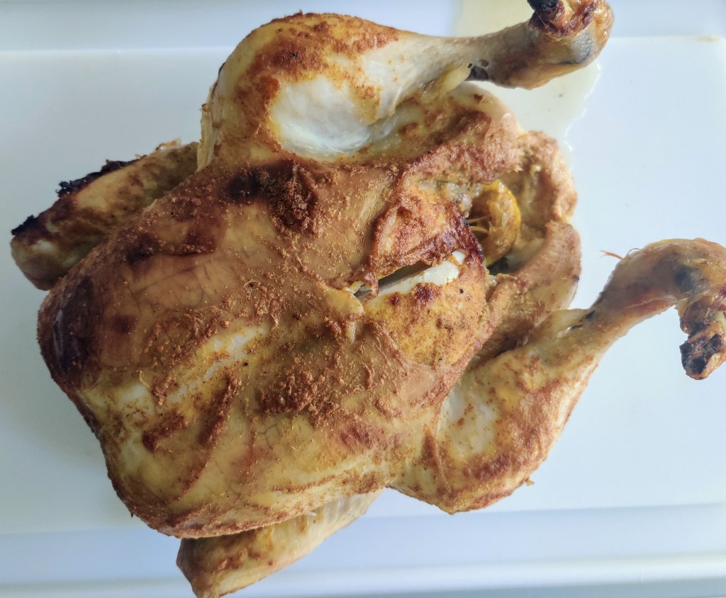 Tandoori Roast Chicken was a delicious way eat roast dinner. We had plenty of meat for this meal. Therefore there was a lot of leftover chicken. I decided to freeze this for another occasion. Also I like to freeze the bones to make stock with later on. The leftover meat would be great in a pasta salad in the next day too. However you decide to eat this dish, as always, please enjoy. Thank you xxx