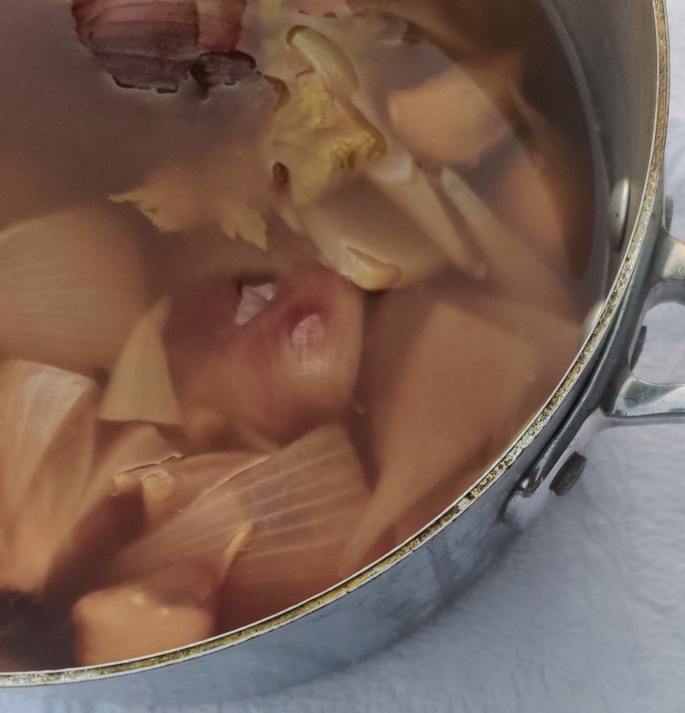 - When it’s cooled completely pour the stock through a colander and into a jug.