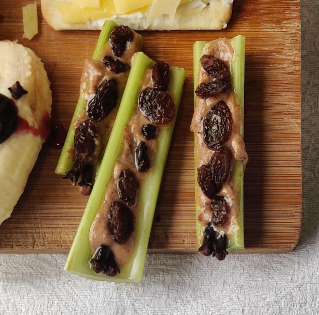 - Spread over the almond or peanut butter into the dipped side of the celery stick.