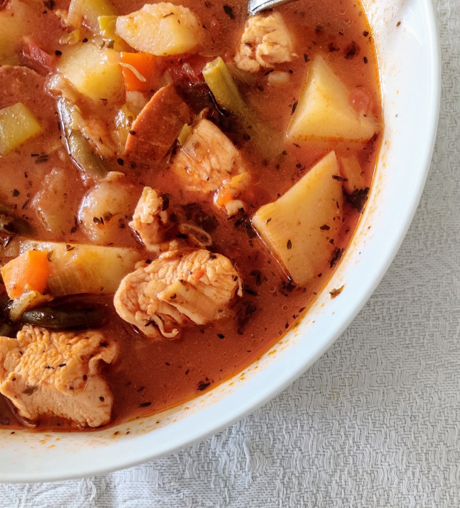 Oven Baked Chicken, Chorizo and Potato Soup was a great soup home and abroad. It was very easy to prepare and cook. All of the ingredients in this soup are freezable. You could make double of this dinner and freeze it for another occasion. Also it makes a lovely leftover lunch the next day too. However you decide to eat this meal, as always, please enjoy. Thank you xxx