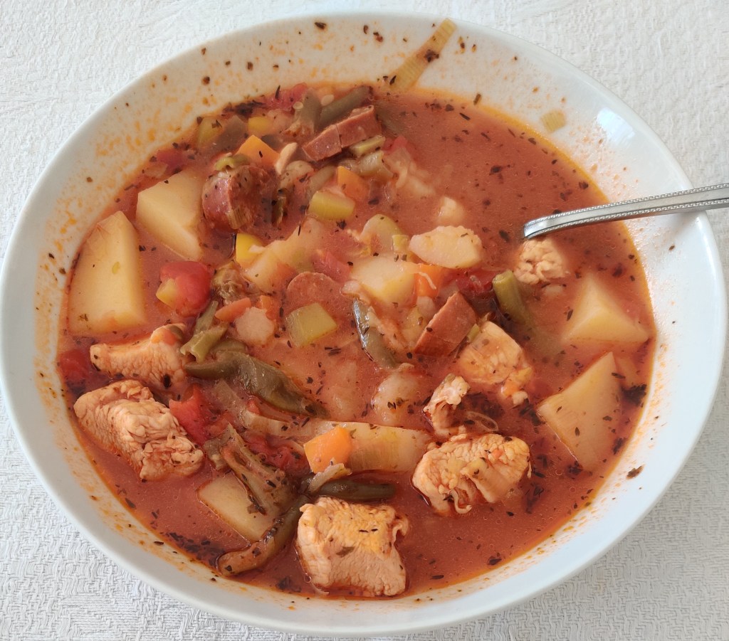 As I have mentioned in a previous post we visited Tenerife this summer. While we were there of course we had to sample the Spanish delicacies. My son Ted, who is 11, loves chorizo. The day after we arrived we headed for the local supermarkets and of we brought chorizo. By the end of the holiday, I had to use it up. Of course, I hate to see waste so I decided to cook it in a soup. I made this meal when we go home and it was as good then as it is as home. That’s way I’m sharing this recipe with you. Below is a video and recipe for you.