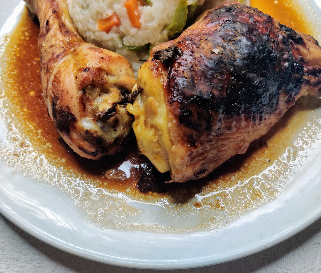 The other week I made easy roast chicken and rice which was very nice! I thought about cooking this dish again. It was Sunday and I was craving more roast chicken. However I decided to adapt the recipe by adding orange, honey and tamari or soy sauce. I felt it needed a bit more flavour and I have only ever used these ingredients with a salmon recipe. Which is always so tasty. Therefore I felt it was time to cook this dish with the other ingredients. The result were amazing and of course, I had to share the recipe with you.