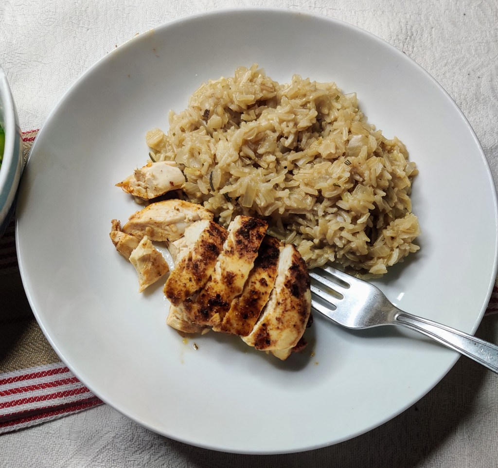 Harissa Spice Chicken with Rosemary and Garlic Rice was a delicious dinner. It was very easy to prepare and cook. I would not recommend making extra of this dish and freezing it. Rice is not a great ingredient to freeze when it’s cooked. It’s best to eat this meal made fresh and finish any leftovers the next day. Plus it make delicious leftovers too. However you decide to eat this dish, as always. please enjoy. Thank you xxx
