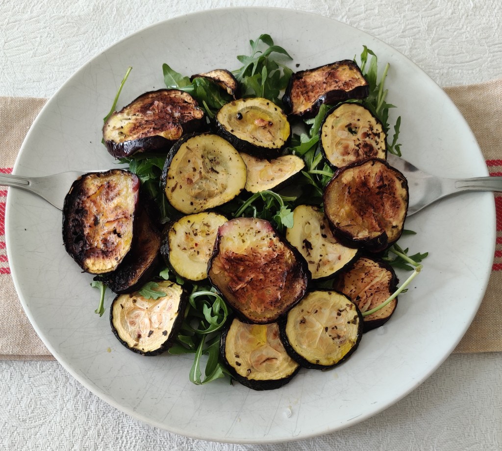 Baked Aubergine and Courgette Salad was a very easy to prepare and cook. I ate this with a piece of fish and sweet potato chips. It could be eaten with chicken or steak too. Also rice or pasta makes great side to eat with this salad. You can cook this dish and store it in the fridge until you wan to eat it. It also make yummy leftovers too. However you decide to eat this dish, as always, please enjoy. Thank you xxx
