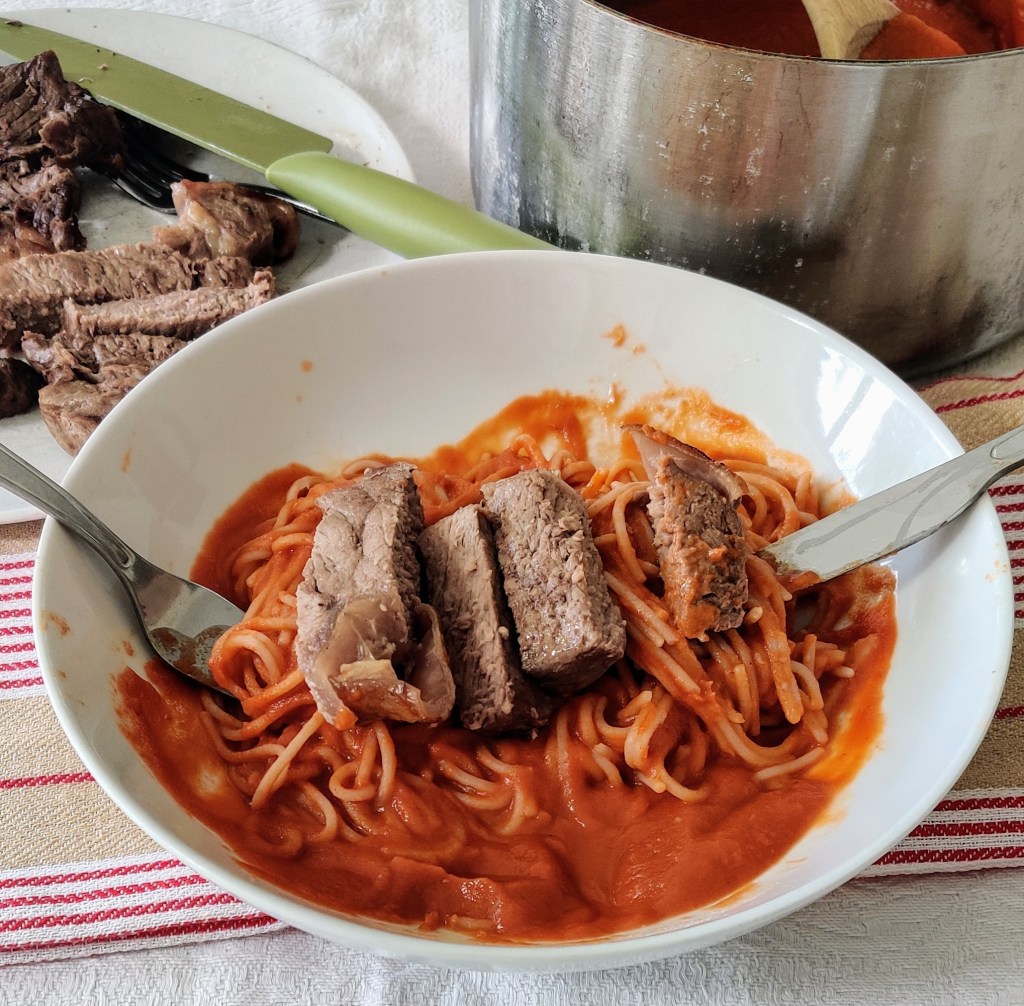 - While the beef is cooking cook the pasta as per the packet instructions.