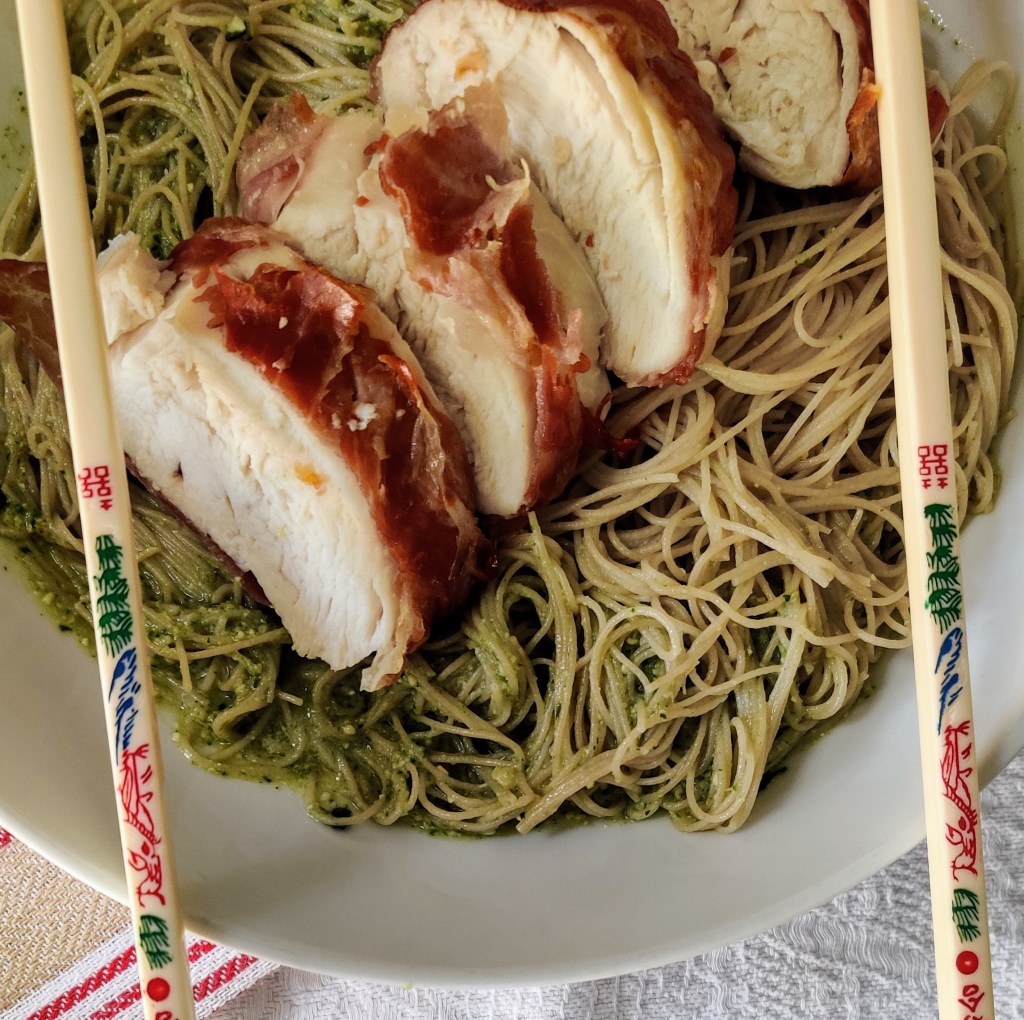Chicken Pesto Noodles were so good. It was an easy dish to prepare and cook. The pesto could be made in advance and frozen until it needs to be eaten. Plus the chicken could be cooked the day before as well. Then stored in the fridge overnight. I use brown rice noodles so I wouldn’t freeze this dish. Personally I think noodles taste better cooked fresh. However you decide to eat this meal, as always, please enjoy. Thank you xxx