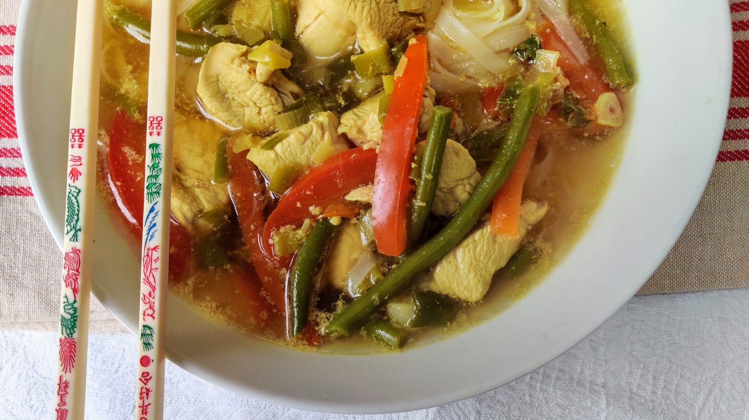 In recent years I’ve been discovering the benefits of ginger and turmeric. I normally serve myself a large cup of hot ginger and turmeric first thing. Last year I started to use it in chicken leg soup. We all enjoyed this dish so I decided to add these ingredients to another noodle soup recipe. The dish was packed with nutrients and protein but best of all it was loaded with flavour. Of course I had to share the recipe with you.