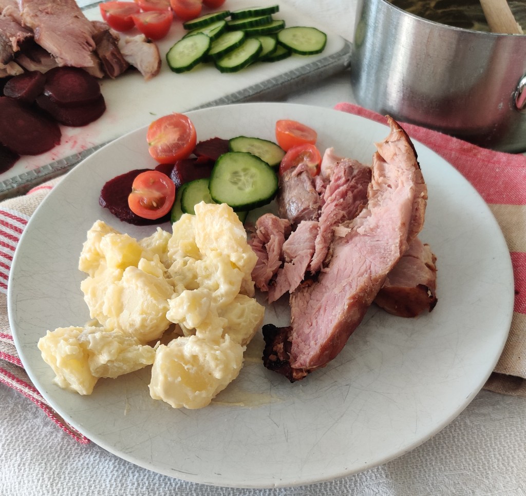 Gammon Ham and Potato Salad was a lovely meal. I made the ham the day before so all I had to do was make the potato salad. You could make the ham and keep it in the fridge overnight Or you could freeze it for another occasion. Personally I would make the potato salad from fresh. Then just simple serve and enjoy. However you decide to eat this meal, as always, please enjoy. Thank you. xxx