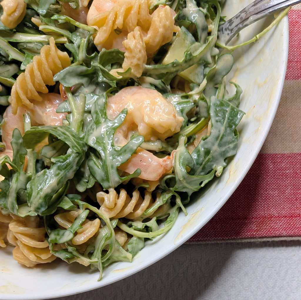 Happy New Year and welcome to Googie,s Kitchen. We kick of the new year with a healthy pasta dish. This Southern Spice Prawn Mayo Pasta is exactly what you need if you have been craving creamy, comforting, and bold flavoured food. Juicy prawns coated in warming southern spices meet a smooth, mayo-based sauce and perfectly cooked pasta for a meal that feels both indulgent and effortless. It’s quick enough for a weeknight dinner but impressive enough to serve when you want something a little special.