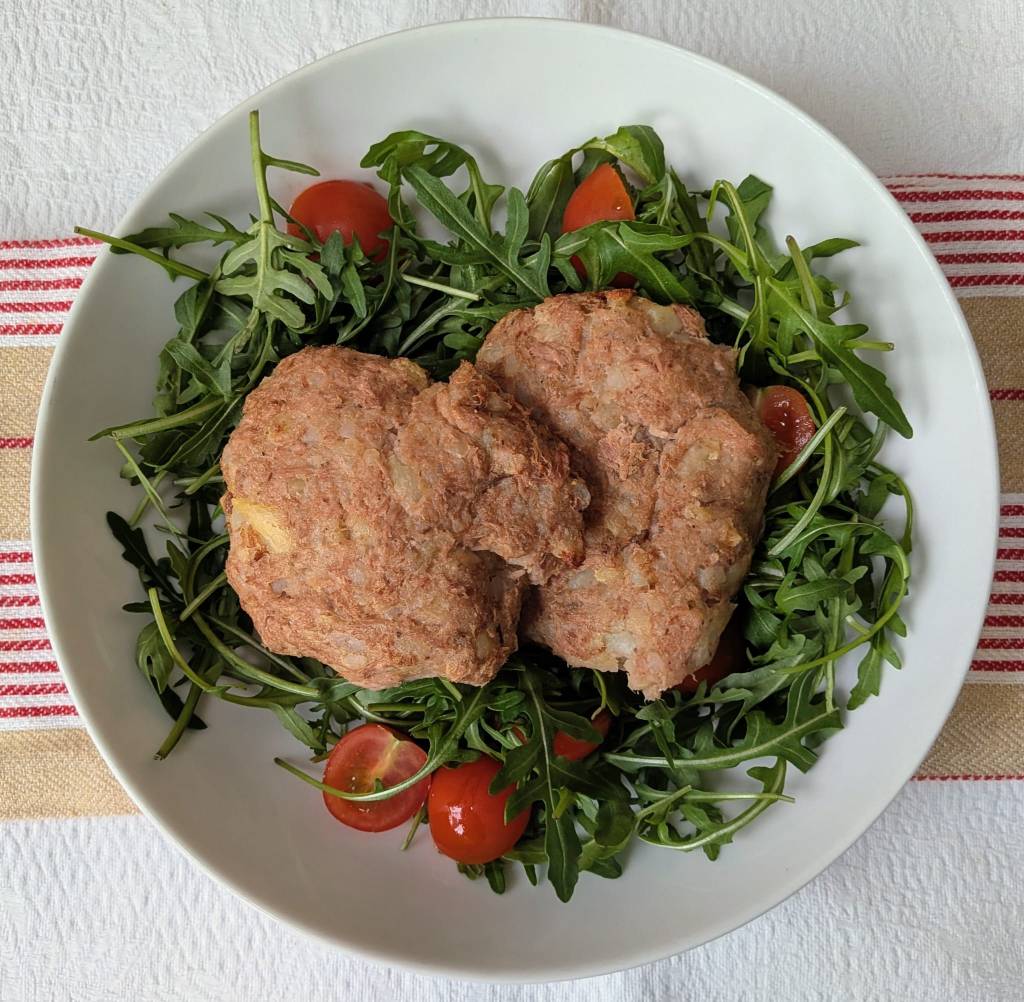- Once the oven has preheated place the tuna cakes onto the baking tray.