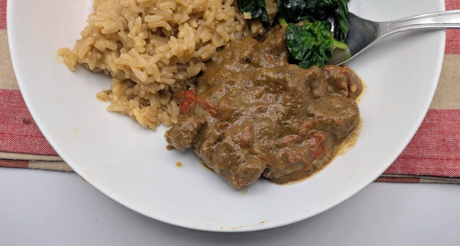 - Pour over the coconut cream or yogurt over the beef.