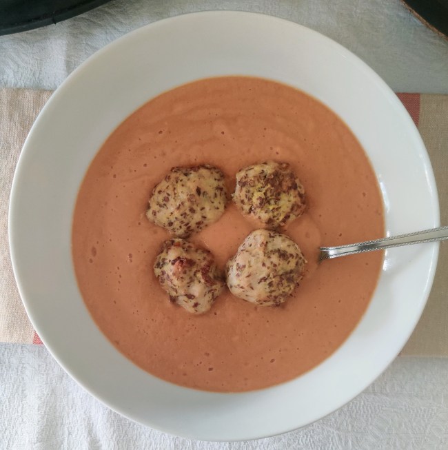 Today I’m sharing my take on Marry Me Chicken Soup. It’s got a twist. This rich and comforting soup is completely dairy-free, made extra creamy with cashew nut cream cheese instead of traditional dairy. I decided to blend it smooth …