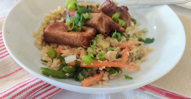 Sweet and Sticky Pork Chops with Vegetable Egg Fry Rice
