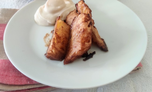 Last month I made savoury salads with fruit in. These were so yummy that I wanted to make more fruit dishes. This lead me to thinking about roasted fruit. Pineapple is sweet but versatile. Also, as I discovered, it roasts …
