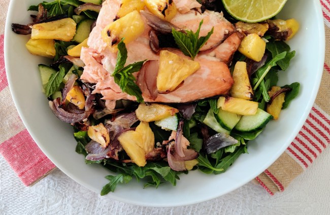 Now I’ve heard of pineapple on pizza but never with salmon. The other day I decided to try a salmon and pineapple salad. I had a pineapple sitting on the island in our kitchen that needed eating. I had also …